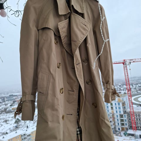 Helt ubrukt Burberry trench kjøpt i London. En del år siden nå, husker ikke hvilken modell, men den billigste ligger vel langt over 20000 kr.