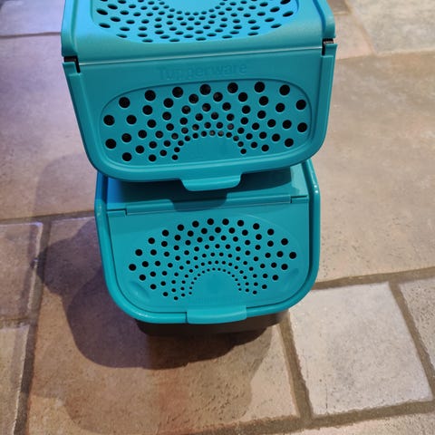 2 Tupperware matbokser en gul og en blå. Selges kr 200 pr stk. Sendes med postnord eller som brev med posten.