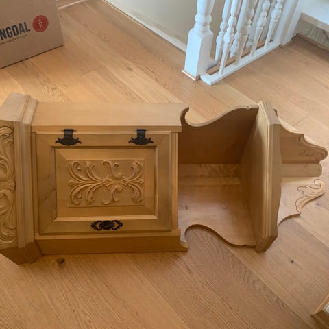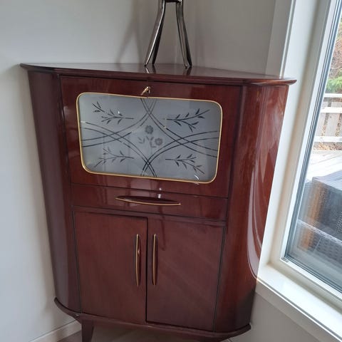 Håndlaget hjørneskap med håndlasert. Solid skap, med noen mindre bruksmerker