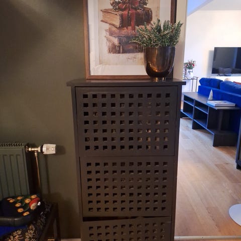 Skohyller fra garderobemekka gis bort. Ca 50 cm bred. Har skapsidene med skinnene fortsatt skrudd på hvis av interesse. Var innebygd i et skap som senere har blitt demontert.