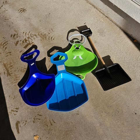 Selger 2 stk akebrett. Det blå brettet har håndtaka røket, men man kan fortsatt holde seg fast. Selges samlet