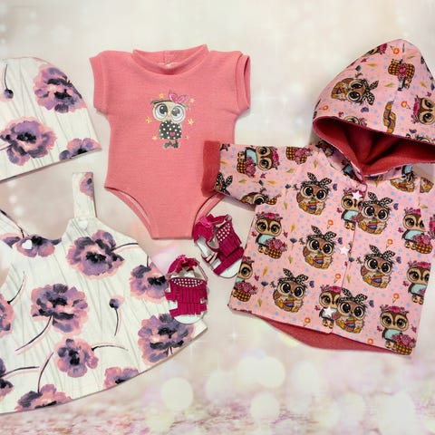 Med denne dukken legger jeg også ved 3 helt nye sett med tøy, som passer dukken. Disse har jeg sydd selv, og er forseggjorte i nye stoffer. Dukketøyet passer også Baby Born.