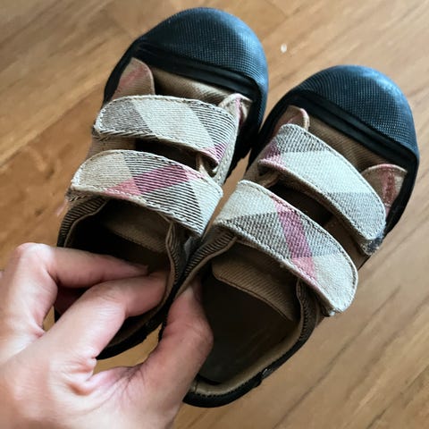 Selger et par Burberry clogs/tresko til høystbydende over 600. Skoen har skinnfor og skinnsåle som er limt på treverk. Har ikke eske.