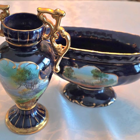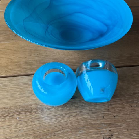 Par med 2 glass. Solid messing. Hvert glass er unikt.