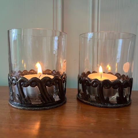 Telysholder i farget, munnblåst glass. Fra Nille. Nypris 199,-