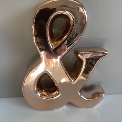 Stor dekorbokstav &. Farge kobber.