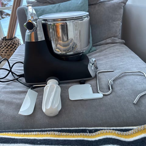 En robust og stødig apparat, bordmodell. Motor og gir er samkjørte for å oppnå høy blandings effekt.. 7.6 liters rustfri kjele