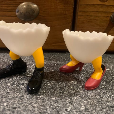 To spesielle Casablanca eggeglass i hardplast - fotballspiller og jåle jente