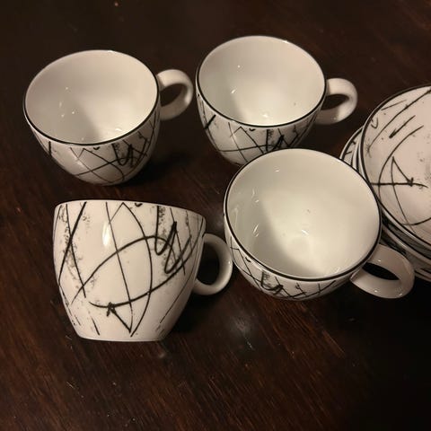 Selger 4 sett med kafé kopper m/skål i serien Partitur.