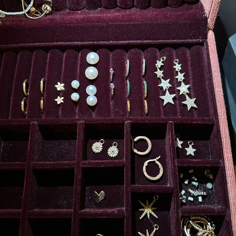 Øredobbene nærmest er i sølv. 100,- pr. par