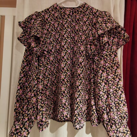 Pent brukt jeans fra Pieces str L selges da den dessverre er blitt litt for stor for meg. Buksen er crop så passer godt til oss som ikke er så høye eller evt dersom du ønsker en litt kortere modell nå til vår/sommer. Buksen er flare og litt frynsete nederst. Ikke røyk.