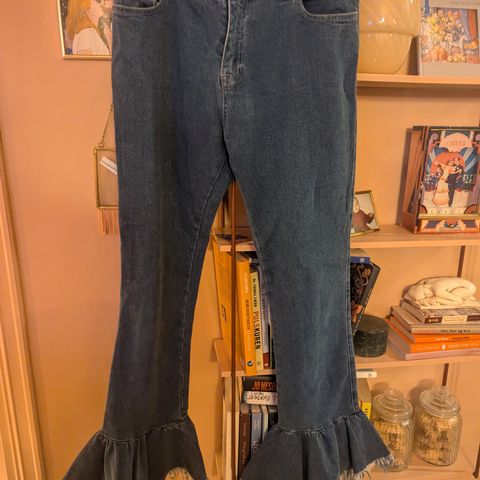 Klokkelommer med glidelås i front, og andre små detaljer som gjør buksen litt spennende.