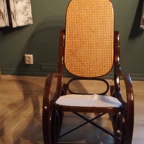 Gyngestol fra Stokke selges. Orginalt trekk i ein lys turkis farge, å det er nok ikkje heilt likt bildene, men du får prøve å sjå det for deg.