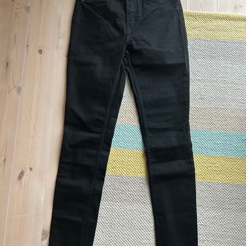 Svart high waist jeans fra Bikbok, størrelse smal. Kjøpt ny på Tise, kun brukt og vasket én gang. Blir dessverre for trang i midjen for meg. I topp topp stand.
