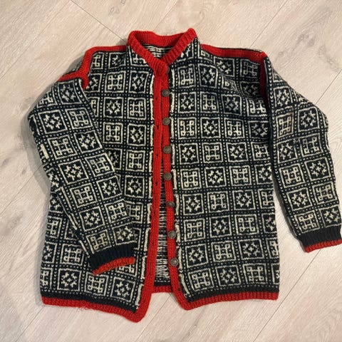 Hjemmestrikket jakke i st 40/42.