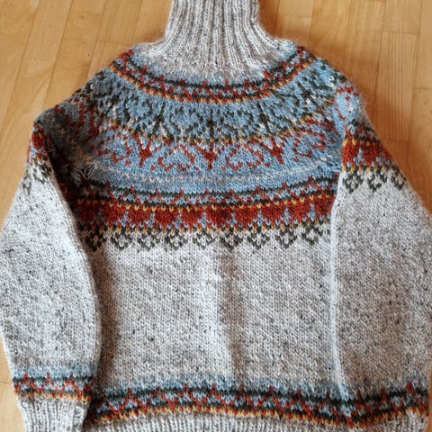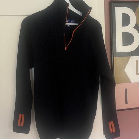 Str M/L Fana strikkegenser farge svart. blå og hvit.