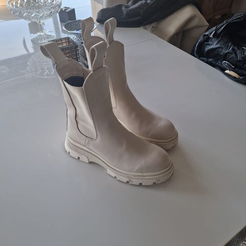 Fine Ganni Western i svart semsket skinn. Er blitt for små etter graviditet 🥲 Håper på ny eier! Gode å ha på synes jeg. Sålen på helen bør snart byttes/ flikkes, koster ikke mye hos skomaker. Skinner er veldig fint og ser lite brukt ut 🌟 Jeg synes de er litt romslige i str., men det kommer nok an på foretrukken passform.