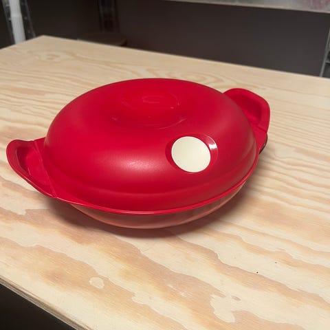 Tupperware ISO Duo med skje er veldig fint å holde maten varm når man spiser.Den har en skål i 2,5l og en i 3,1l som settes sammen,kan ta varmt vann i den 3,1 l skål og sette på toppen den 2,5 l da hånden maten varm.Tupperware er en høy kvalitet plast som er skader ikke så mye som vanlig plast.Kan også brukes som 2 servering skåler med mat inne på bordet.Den er i god stand og er veldig finne farger😊.Prisen kan diskuteres.