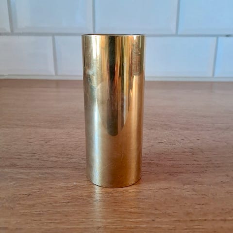 Selger en lysestake i tinn, kubbelysestake. Pewter Haugerud, Norway