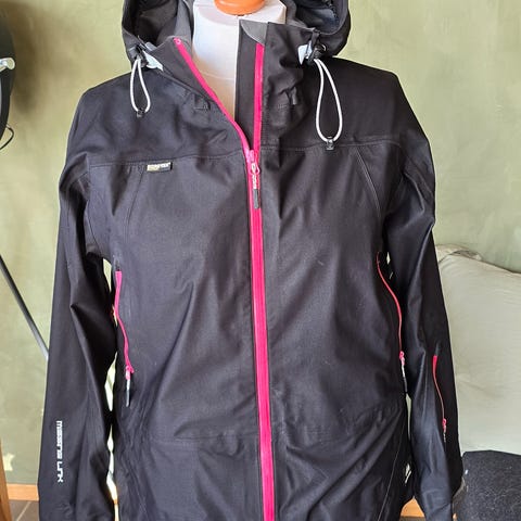Lilla dame vind,vanntett jakke . W- gyard 10 000. Er str 42,men tilsvarer str 44. Er lommer med glidelås,hette, glidelås og borrelås. Reflex på teksten.