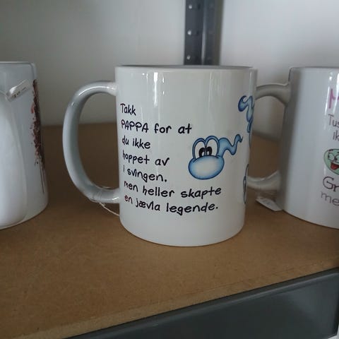 Enkelt og greit en kopp til far, ikke stempel, men tror den er norsk.