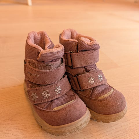 Et par lilla og rosa Gore Tex vintersko. Et par joggesko lilla. Et par superfit tøfler lilla. 50 kr paret.