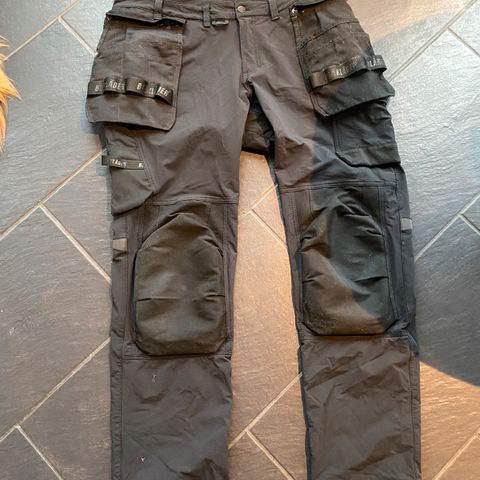 Blåkläder arbeidsbukse/håndverksbukse. Svart, str 56. Påsydd en ekstra hempe i lappen bak for enklere oppheng. Avtagbare lommer for enklere rengjøring av bukse.