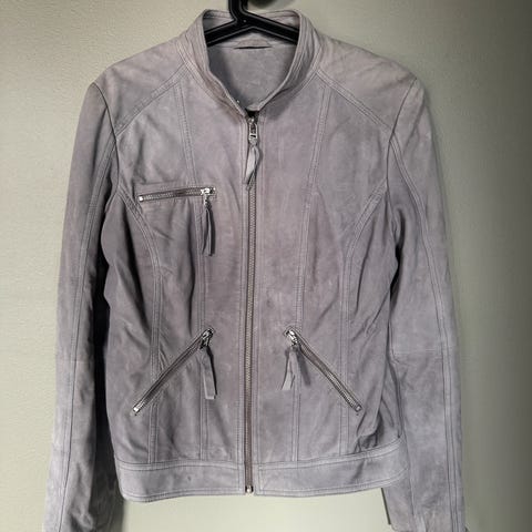 Flott tynn og utrolig myk jakke som er lite og meget pent brukt. Ser ut som en myk skinnjakke, men er i 100% polyester microfiber.