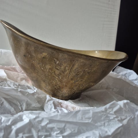 19,5 cm x 11,5 cm kaldhamret kobberbolle. Håndlaget i Norge.