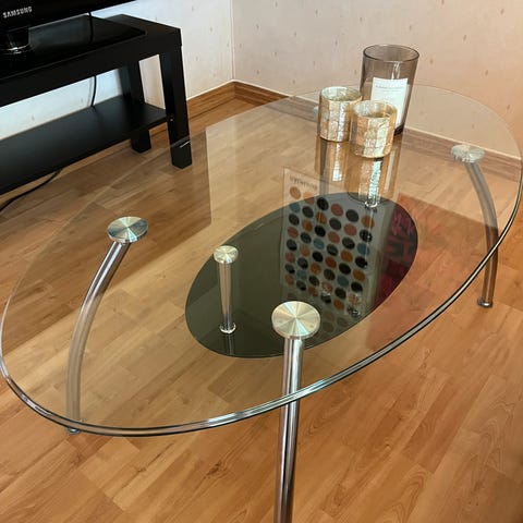 Vakkert glassbord til salgs, perfekt for 6 stoler. Målene er 100 cm bredt, 180 cm langt, og 80 cm høyt. Bordet har en moderne design som passer til de fleste innredningsstiler. Selges til en rimelig pris for å finne et nytt hjem raskt. Ta kontakt om du er interessert!" 🪑🪑🪑🪑🪑🪑