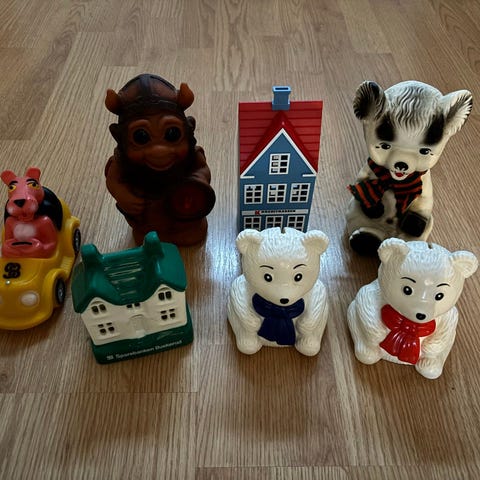 Div sparebøsser, bla Julius, Hjalmar, Solan mm