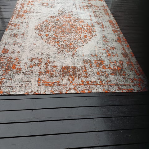 ALTSÅ: Det at det ser «slitt ut», dvs tenningen synes, er en del av designet på disse «antique looking carpets». Det skal altså være slik!😊 Teppet er veldig fint❣️