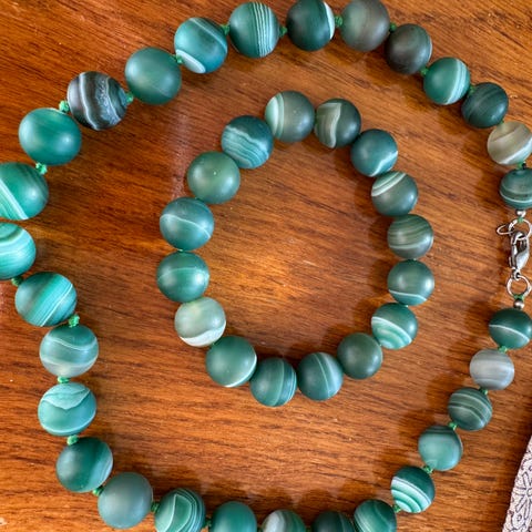 Flott vintage håndlaget halskjede med grå polert agat selges kr 350,-
