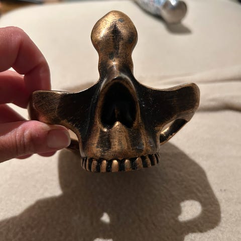 22 cm høy, 19 cm bred og 8 cm dyp.