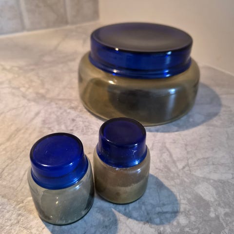 Blåtopp-krukker fra Hadeland Glassverk, design fra 60-tallet