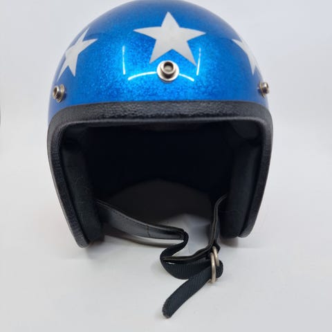 Hjelmen fremstår som ny og er kun brukt et par ganger. Remmene på hjelmen er i mykt skinn og utrolig myke og behagelige. Dette er en kvalitets hjelm.
