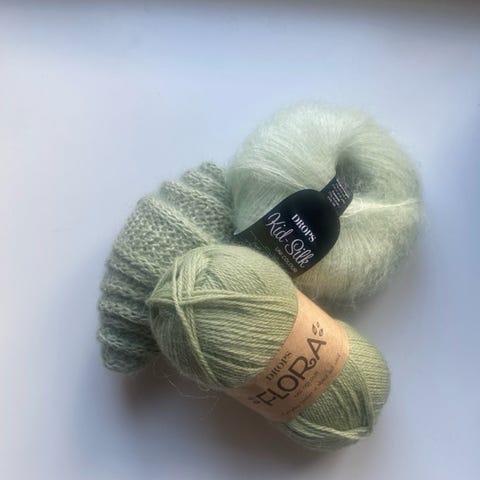 Fin Garnpakke ink. Oppskrift. Nok garn til str.m. 100% alpakka