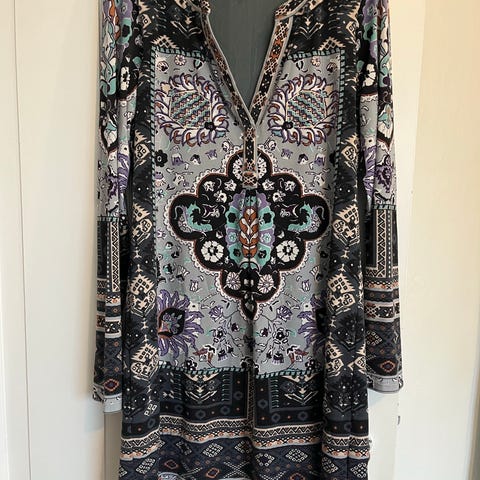 Geometriske lang bluse eller kjole str L