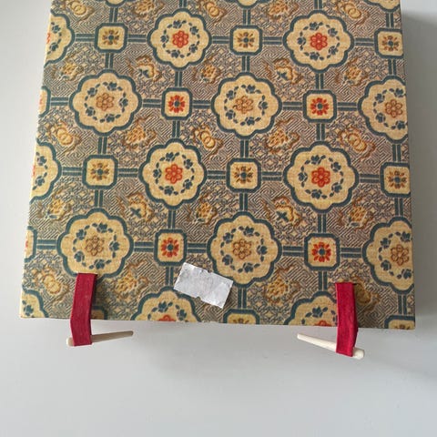 Lommebok / mappe til rasjoneringskort i «krisematerialet» vevd papirhyssing fra krigens dager