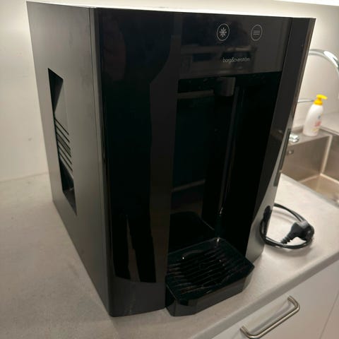 Vanndispenser er kun pakket opp og montert, men den har ikke vært tatt k bruk pga. manglende vanntilførsel.