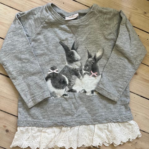 Genser fra HM med kaninmotiv, str 110/116 selges for 35 kr.