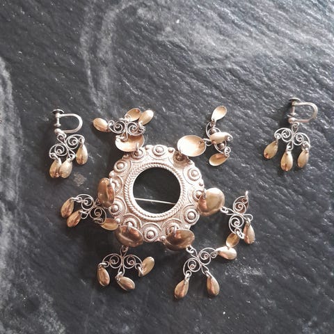 Nå nærmer det snart 17 Mai og konfirmasjon tid .Har litt div bunad sølv, belte, brystduk. Har ingen kjennskap til det, da min mor har arvet dette, noe av det må kanskje pusses. Priser står under hvert bilde, kan sende med posten mot at kjøper betaler porto. Bud kan kommes med