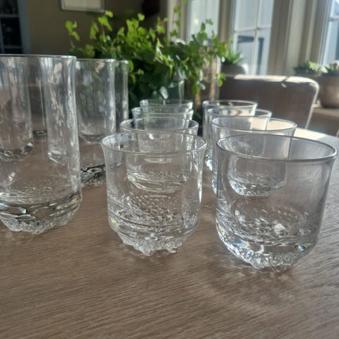 10 stk lave og 4 stk høye ”Svalbard” glass selges samlet for 750,- . Se bilder for mål.