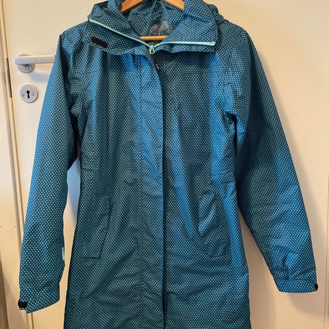Selger den fine og stilige regnjakke,str.36. Jeg bruker str.M og passet veldig bra. Avhengig sikkert om hvilke klærne bruker man under jakke.