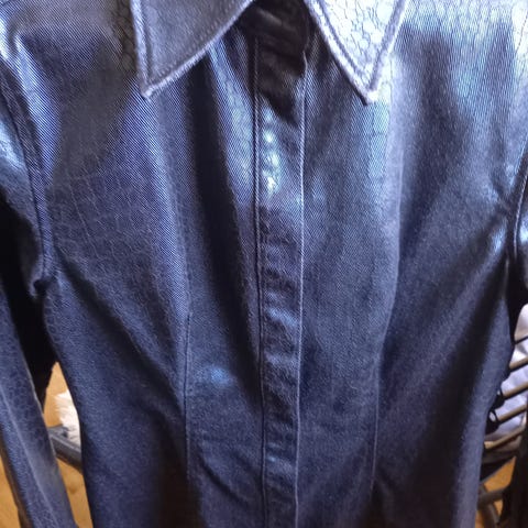 Vaffel skjorte i svart med krage