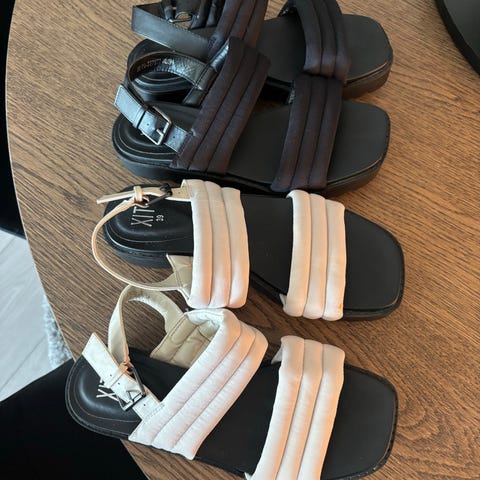 Pent brukte sandaler fra HM. Str. 40 men opplever de som litt smale. Jeg er normalt en 38/39 og disse passer meg.