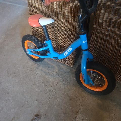 Rød trehjuls sykkel som kan bygges om til balanse sykkel til små barn. Passer best fra 2+. (Pedalene mangler på bildet) men vi har disse også😊 litt støvete etter å ha blitt lagret i kjelleren. Ingen slitasje. Selges grunnet overgang til større sykkel.