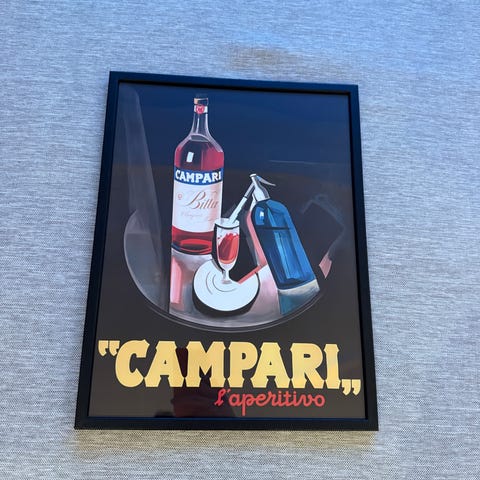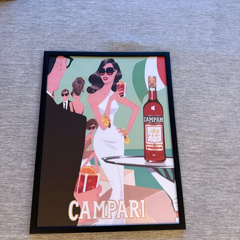 Plakat av Gustav Lautrup med teksten "Jeg vil bare drikke rødvin på en fortovscafé i Paris". selges med ramme hvis ønskelig. Kjøpt i København.