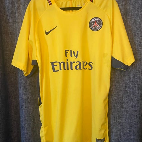 Selger en brukt Paris saint-germain (PSG) treningsgenser i størrelse XL voksen herre (dette er dri-fit adv elite versjon, noe mer slim for/bedre passform enn standard supporterutstyr). Noe små nupper etter bruk. Se bilder for videre beskrivelser av tilstand.
