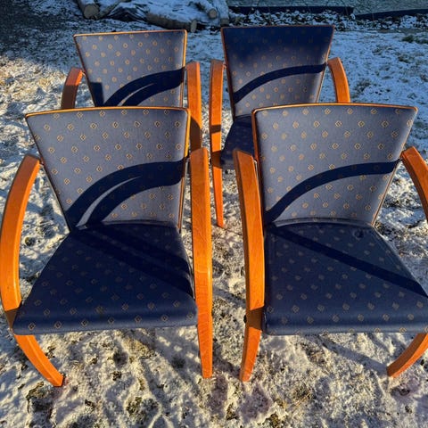 Selger 8 stk solide stoler med sete og rygg i finer med stålben.